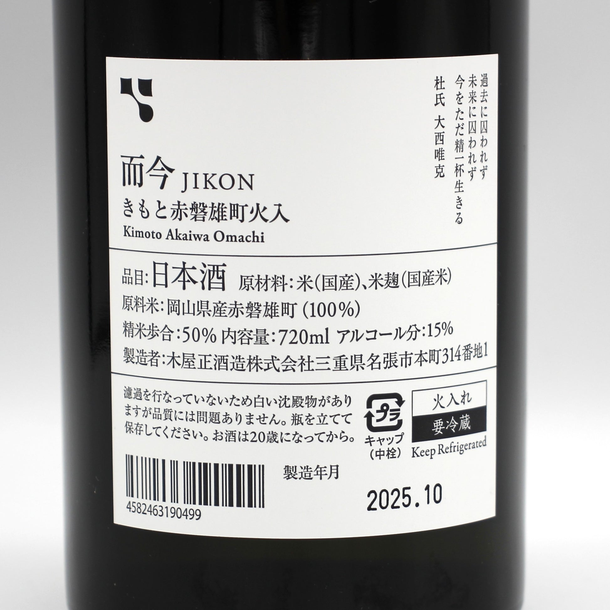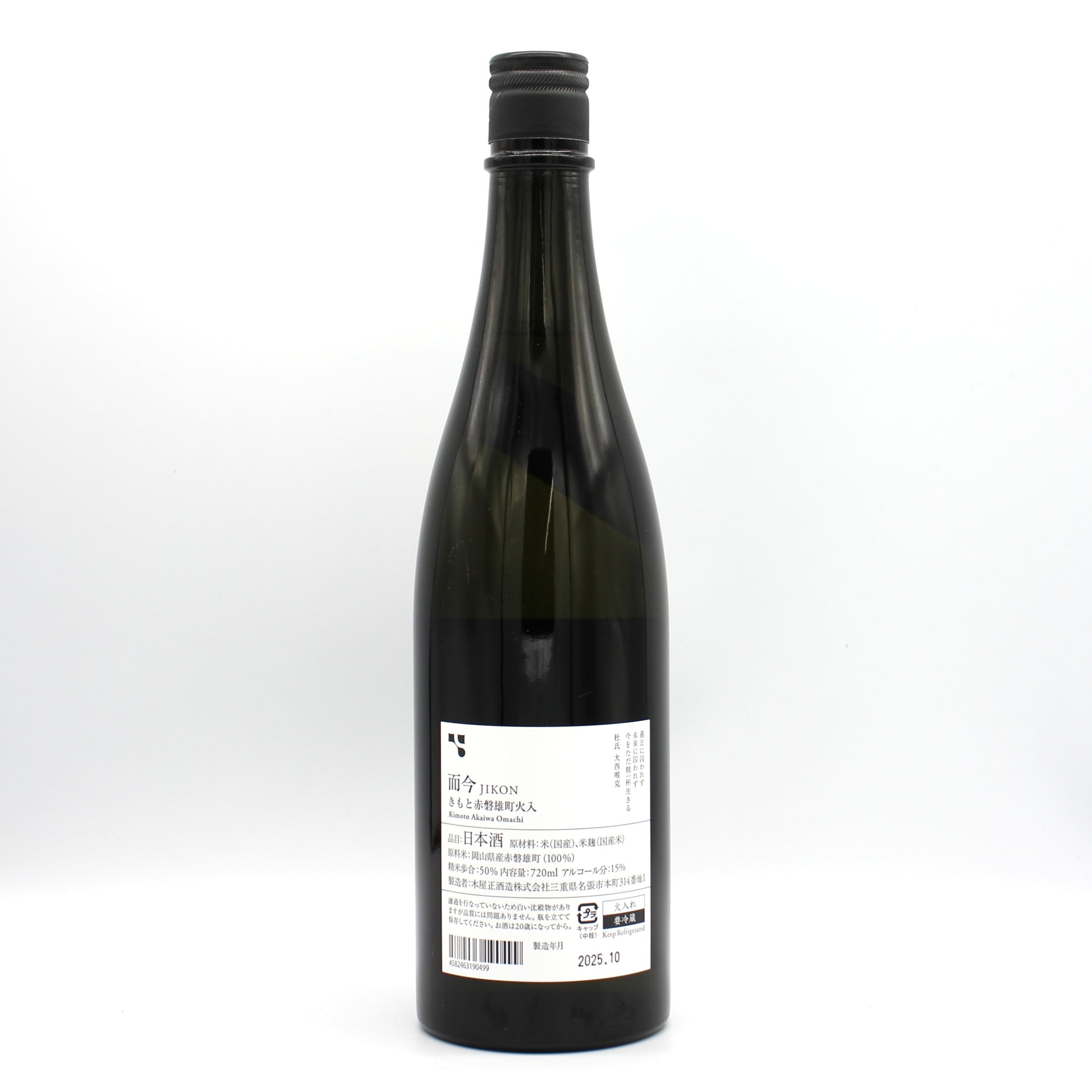 木屋正酒造 而今 じこん きもと 赤磐雄町 火入れ 日本酒 15% 720ml 箱無し(2025年10月製造)