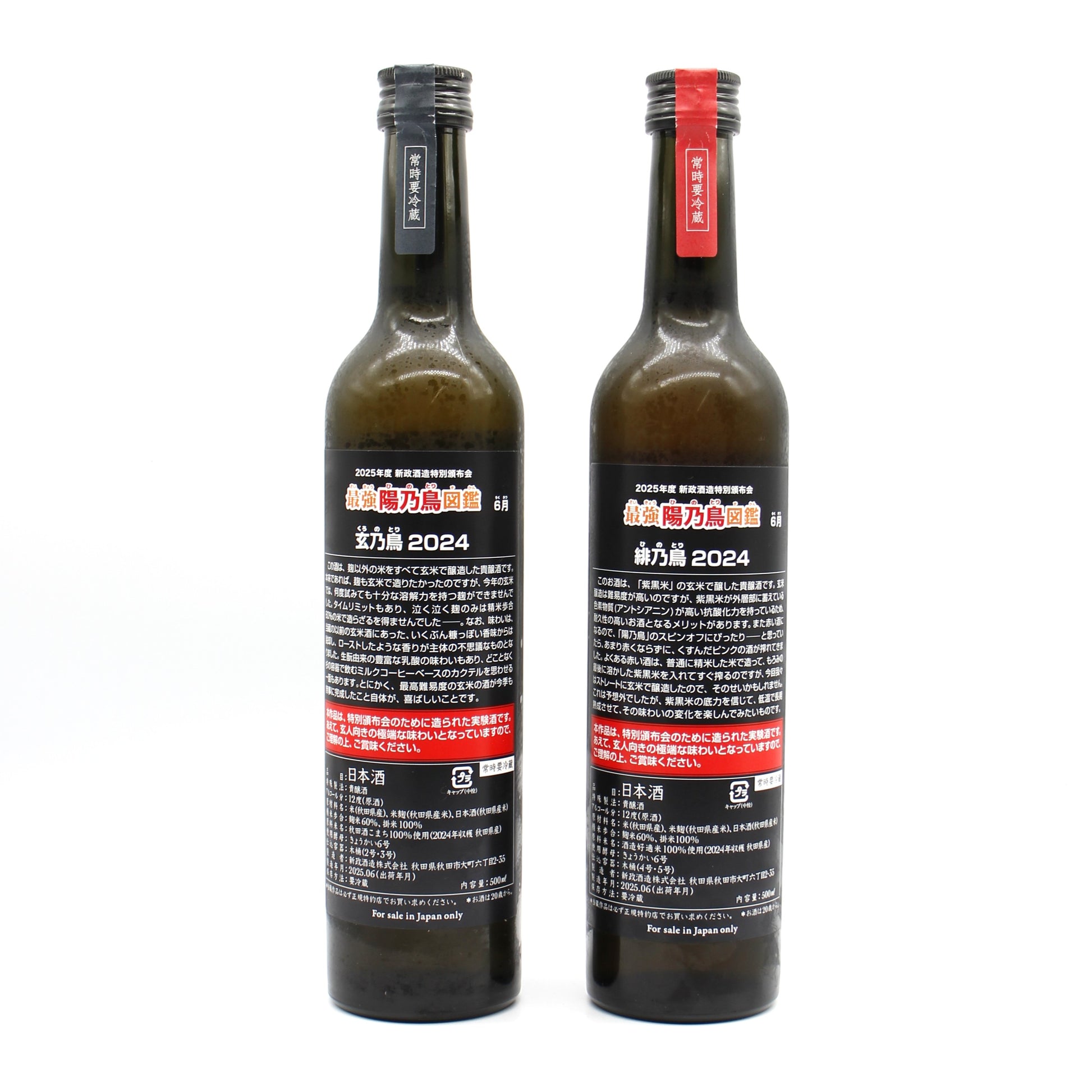 新政酒造 2025年度 特別頒布会 最強 陽乃鳥図鑑 緋乃鳥 玄乃鳥 2024 貴醸酒 日本酒 12% 500ml 2本 箱付き ※ラベル難有(2025年6月出荷)