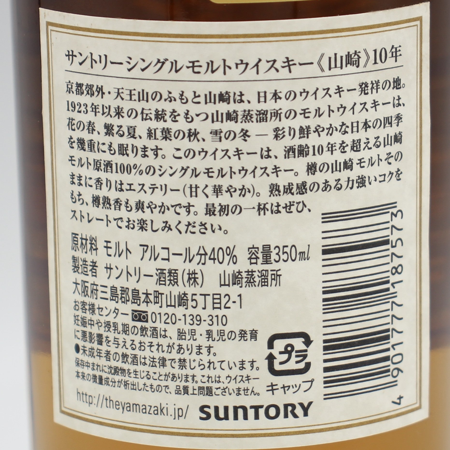 サントリー シングルモルト ウイスキー 山崎 10年 ホワイトラベル ハーフボトル 40% 350ml 箱無し