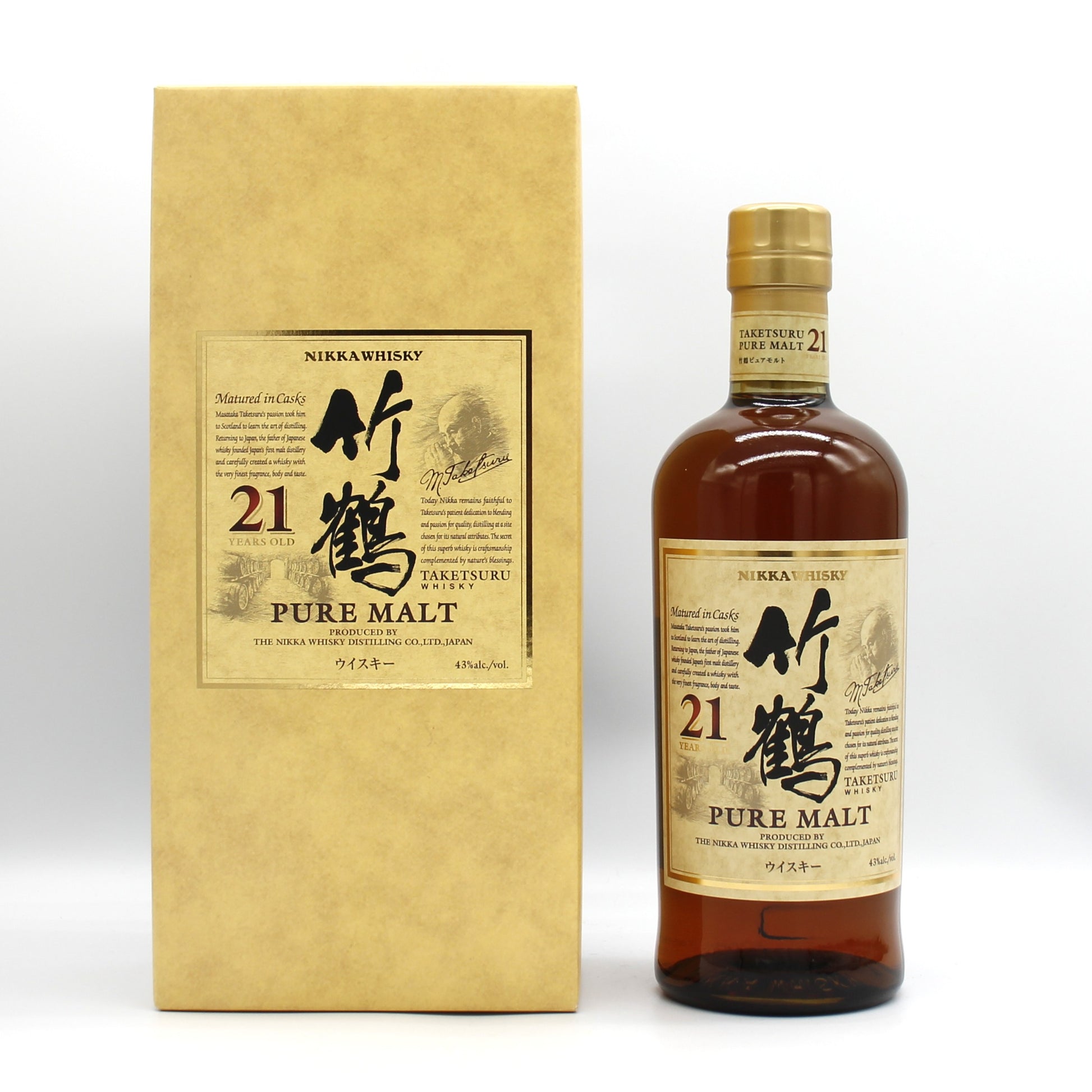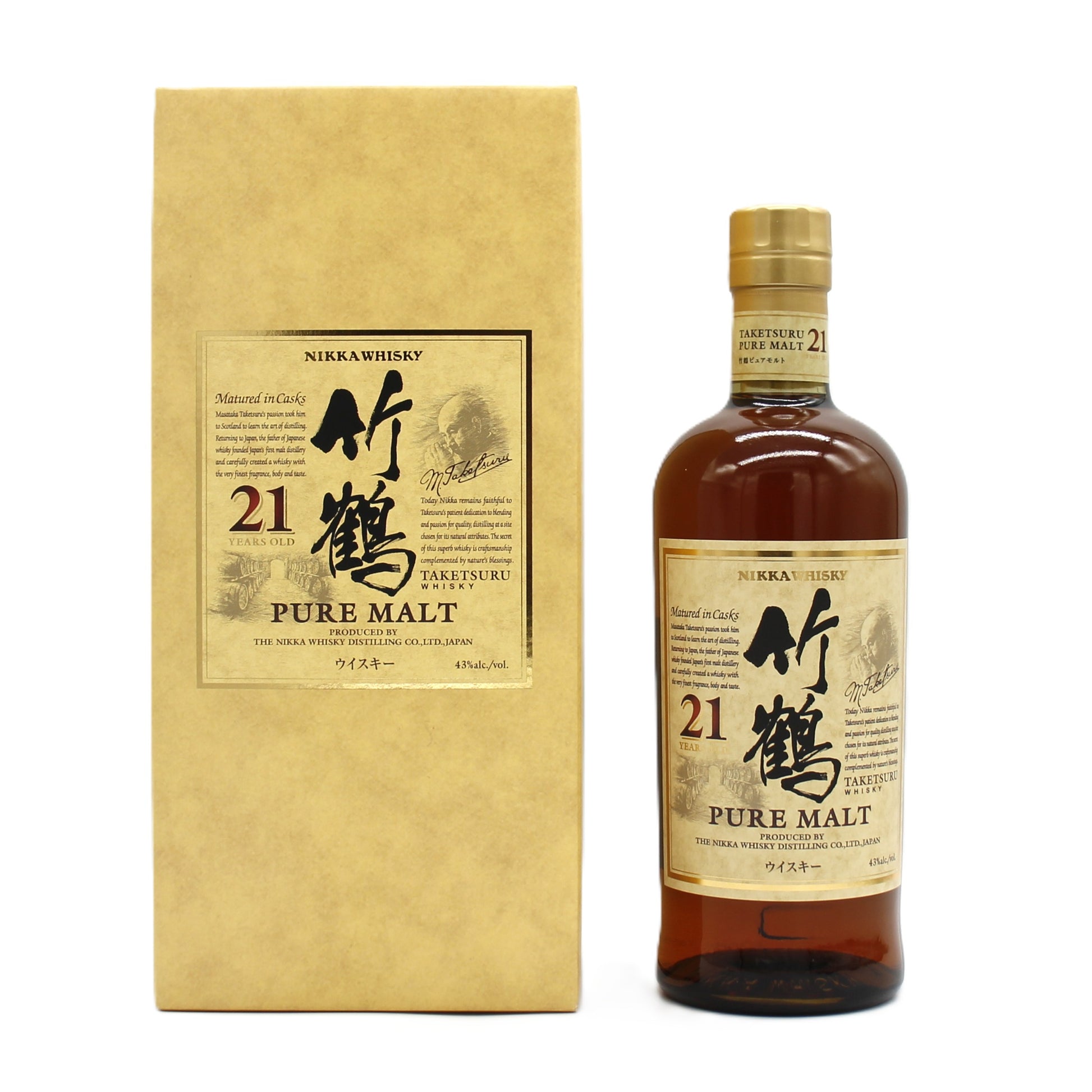 ニッカ ウイスキー ピュアモルト 竹鶴 21年 スリムボトル 新ラベル 43% 700ml 箱付き